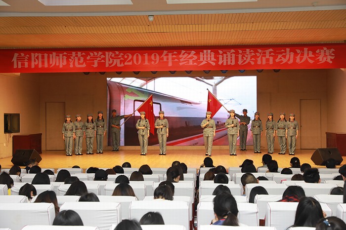 5月7日下午,信阳师范公司诵读比赛决赛在理科楼报告厅举行。公司研究生诵读代表队积极参加比赛,并取得了优异成绩,荣获“优秀组织奖”,《党旗颂》节目荣获三等奖。