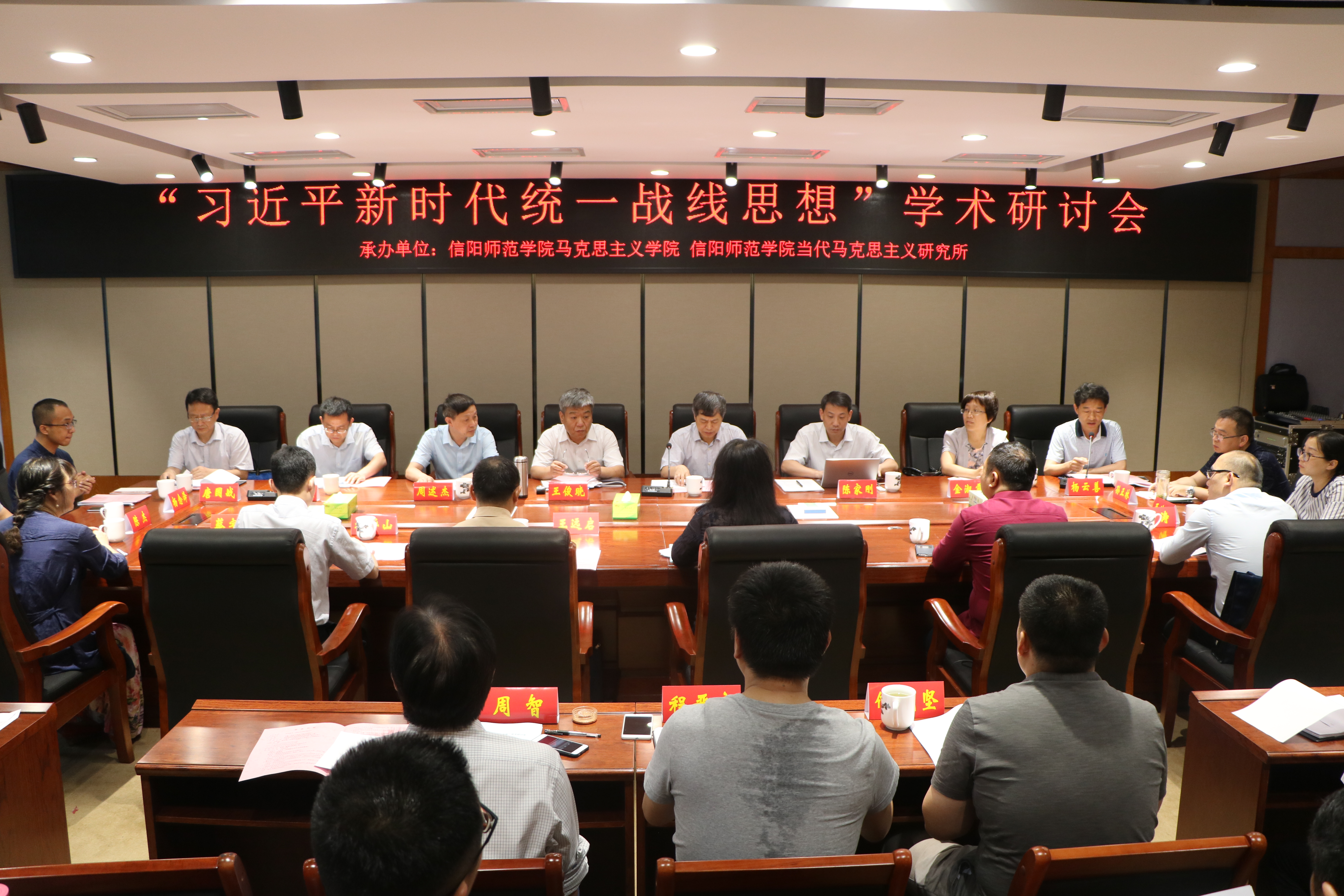 为深入学习习近平新时代统一战线思想,5月19日,由信阳师范公司tyc522cc太阳成集团和当代马克思主义研究所共同承办的“习近平新时代统一战线思想”学术研讨会在公司逸夫楼三楼会议室隆重召开。董事长李俊、河南省社会主义公司副经理王俊晓、湖南省社会主义公司副经理周述杰、中央党史和文献研究院研究员陈家刚、复旦大学统战理论研究基地副秘书长肖存良、山东大学当代社会主义研究所办公室主任金淑霞