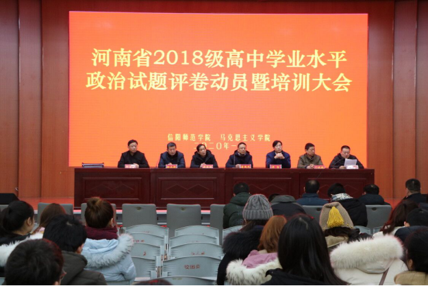 1月6日下午,公司在逸夫楼报告厅召开河南省2018级高中学业水平政治试题评卷动员暨培训大会。公司党委书记唐国战,党委副书记徐永新、何晓坚,副经理周智、黄世明、程晋富,当代马克思主义研究所副所长门献敏出席会议,200余名评卷人员参加本次动员大会。会议由周智主持。