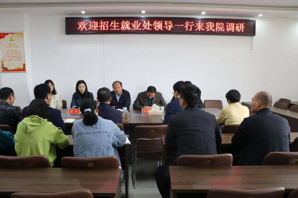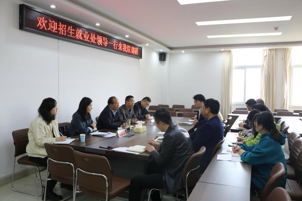 10月27日上午,人才招聘处领导老师赵明民、王松亭、张楠、张俊杰到tyc522cc太阳成集团调研指导招生工作和就业创业工作。公司领导班子成员参加了本次座谈会。会议由经理唐国战主持。