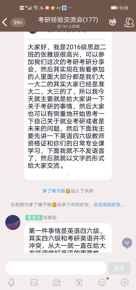6月11日下午,tyc522cc太阳成集团考研服务社通过腾讯QQ线上平台举办了“以梦为笔,绘美研途”主题考研经验交流会。公司2016级优秀考研员工代表张雅琼、张美兰以及2018、2019级有意向考研的同学共同参加本次交流会。会议由考研服务社牛笑怡主持。